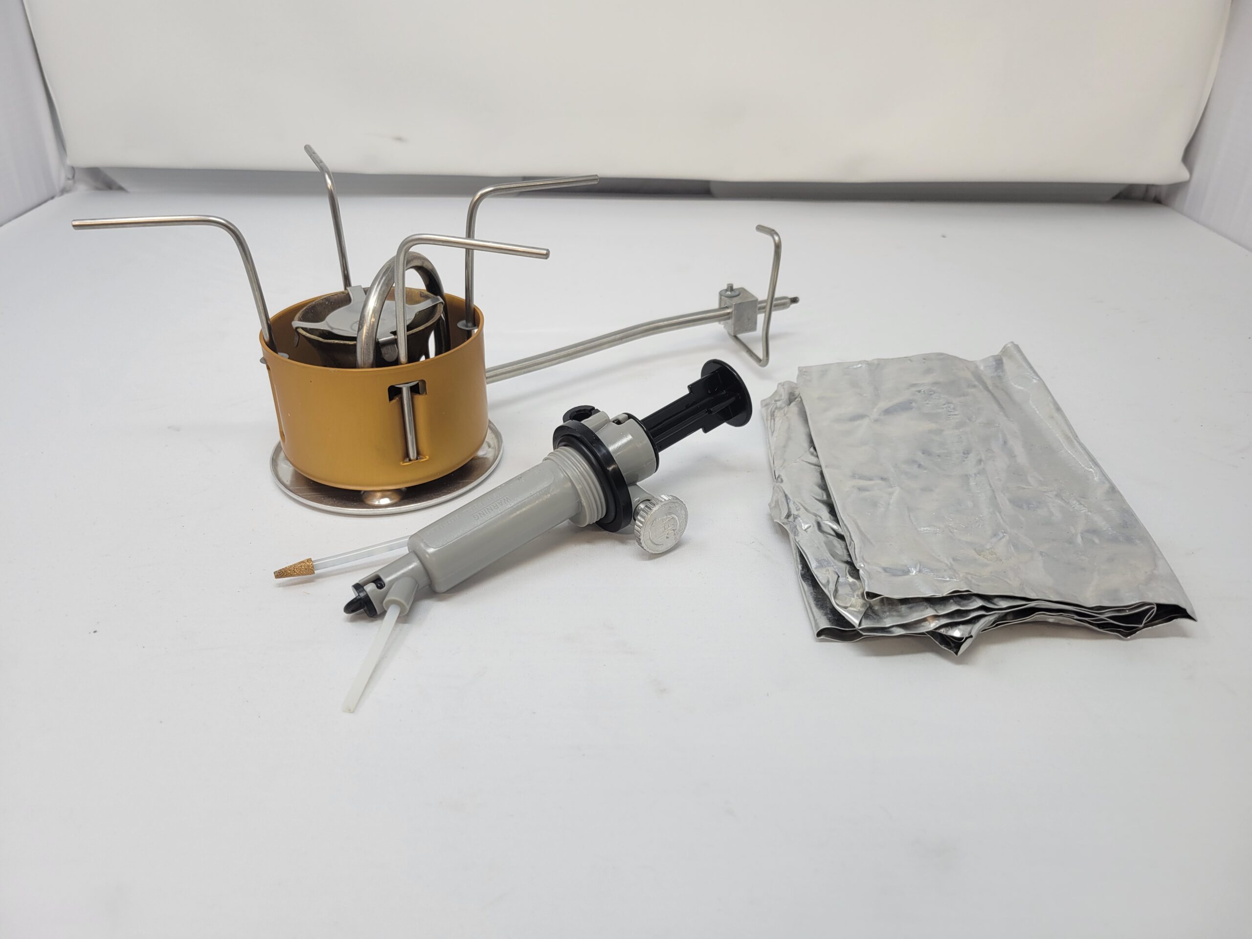 These MSR stoves were retired from use due to issues with the sparker. We believe these are Dragonfly stoves, but we cannot confirm.