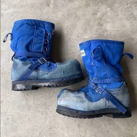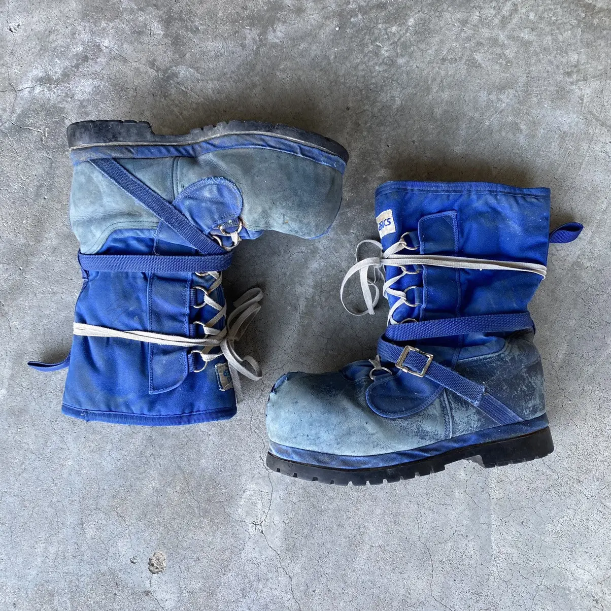 Manufactured by ASICS, these blue FDX boots are one of the standard boot options issued to US Antarctic Program scientists and personnel deploying to the South Pole, McMurdo Station, and other parts of Antarctica. Sometimes described as the warmest option available to USAP personnel, they are popular for deep-field research and can be more comfortable than the solid-rubber Bunny Boots. They are all field-worn from multiple seasons’ service in Antarctica, but are ready to keep a new owner’s feet (exceptionally) warm!