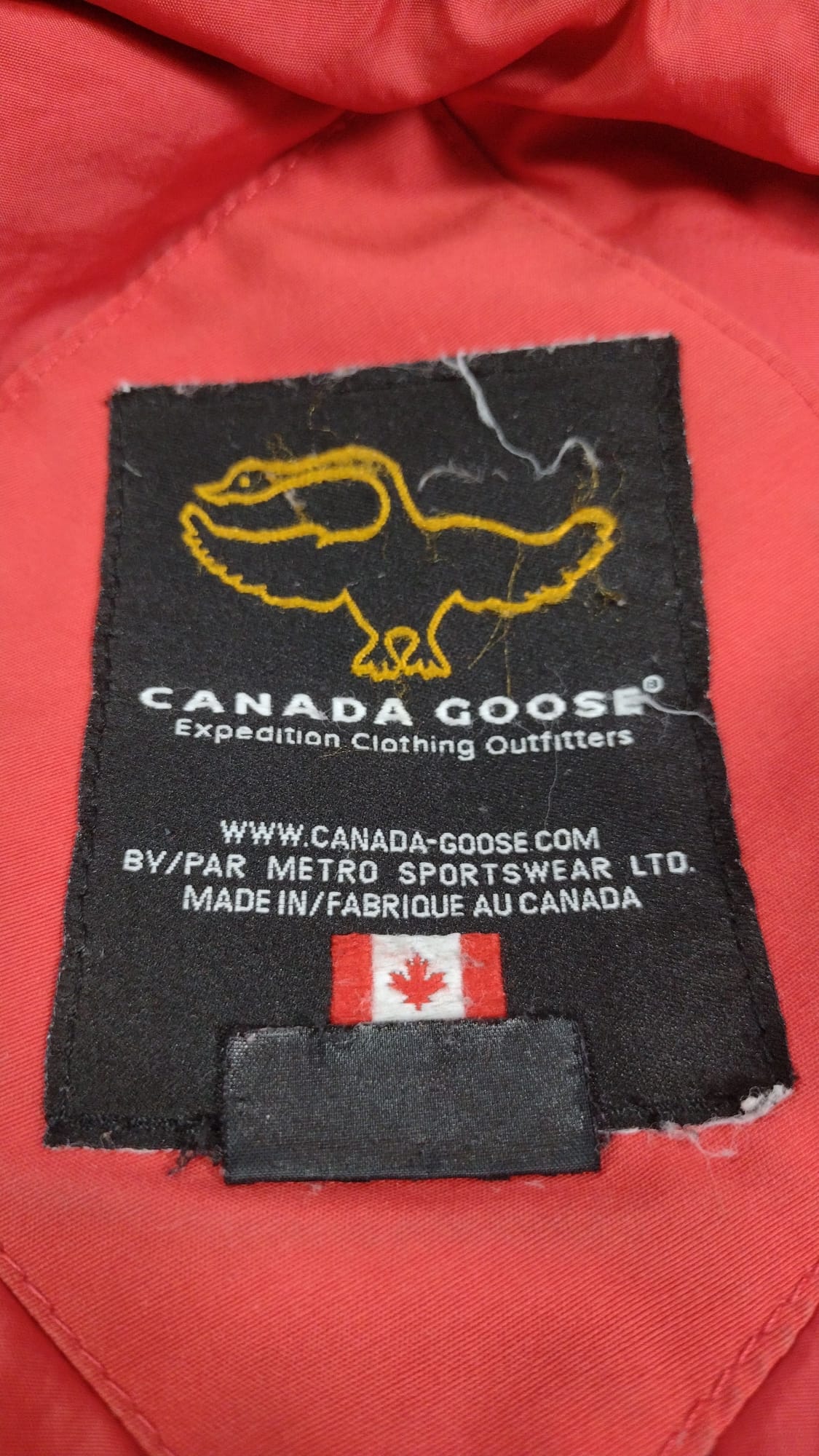 These Canada Goose “Big Red” parkas show significant staining. While specialty cleaning may help reduce the stains, results are not guaranteed.