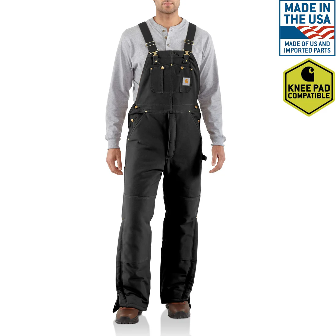 Extreme Cold Weather (ECW) gear, including Carhartt jackets and overalls, is issued to participants in the United States Antarctic Program (USAP). These insulated overalls are commonly used by USAP support and fuel crews.