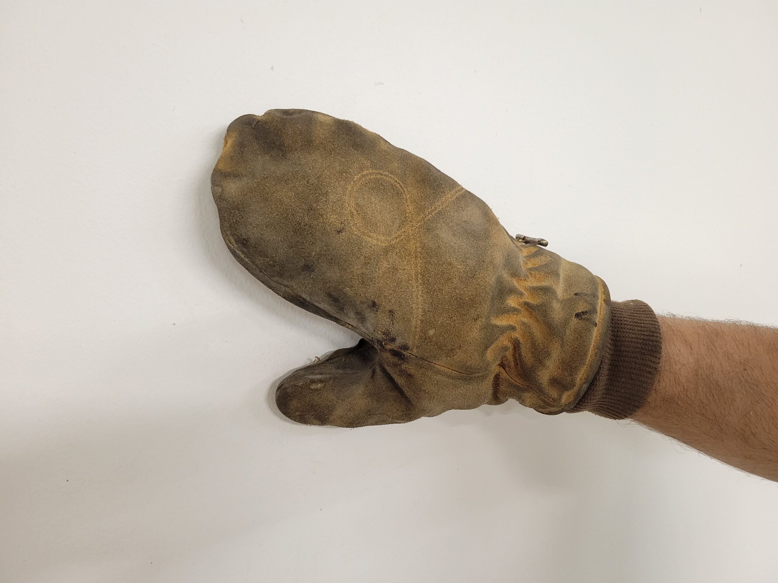 The mittens will show mild to moderate staining. May have the size written on one mitten in black sharpie.